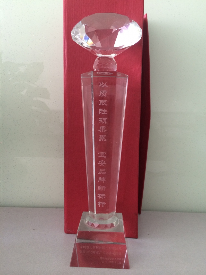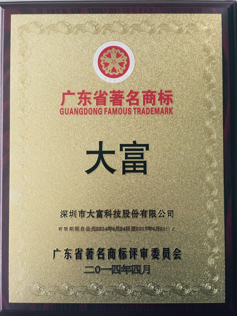 2014年04月24日,根据《广东省著名商标认定和管理规定》和《广东省著名商标评审委员会关于广东省著名商标认定和管理的实施细则》的规定,经广东省著名商标评审委员会评审通过,决定认定深圳市必一体育B-sport(中国)股份有限公司注册的“大富”商标为2013年度广东省著名商标。必一体育B-sport(中国)作为射频器件领域领先的高新技术企业获此荣誉,充分说明我司知识产权工作得到省市政府职能部门的一致认可。