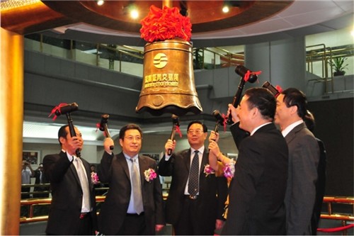 2010年10月26日上午8时,深圳证券交易所三楼洋溢着激动人心的气氛。应邀参加上市仪式的嘉宾们,一边兴致勃勃地与拓荒牛雕塑合影,一边等待着那激 动人心时刻的到来。随着时钟一分一秒的推进,9时24分49秒后进入倒计时,交易所现场沸腾了,人们齐声喊着:“10、9、8、7、6……”