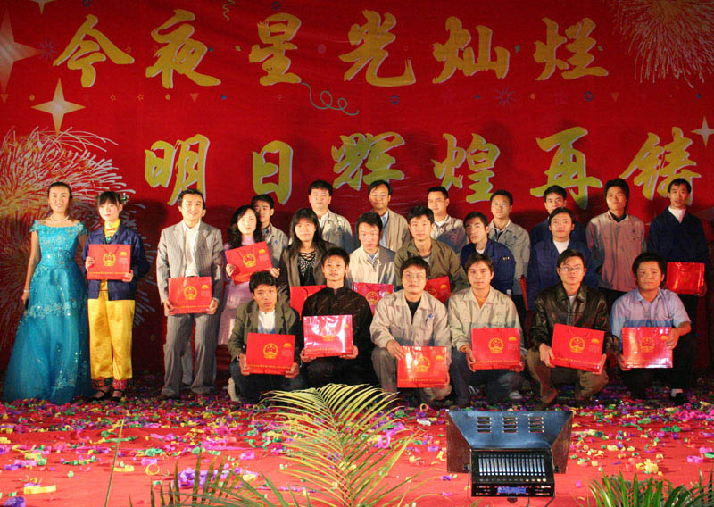 2006年12月31日18:30分,大富(深圳)科技有限公司2007年元旦文艺晚会暨2006年度颁奖典礼——“今夜星光灿烂,明日辉煌再铸”在大 富新工模车间隆重上演。孙尚传总裁、胡青副总以及各部门总监、经理纷纷来到现场,与全体员工欢聚一堂,兴致勃勃地观看了整场晚会。